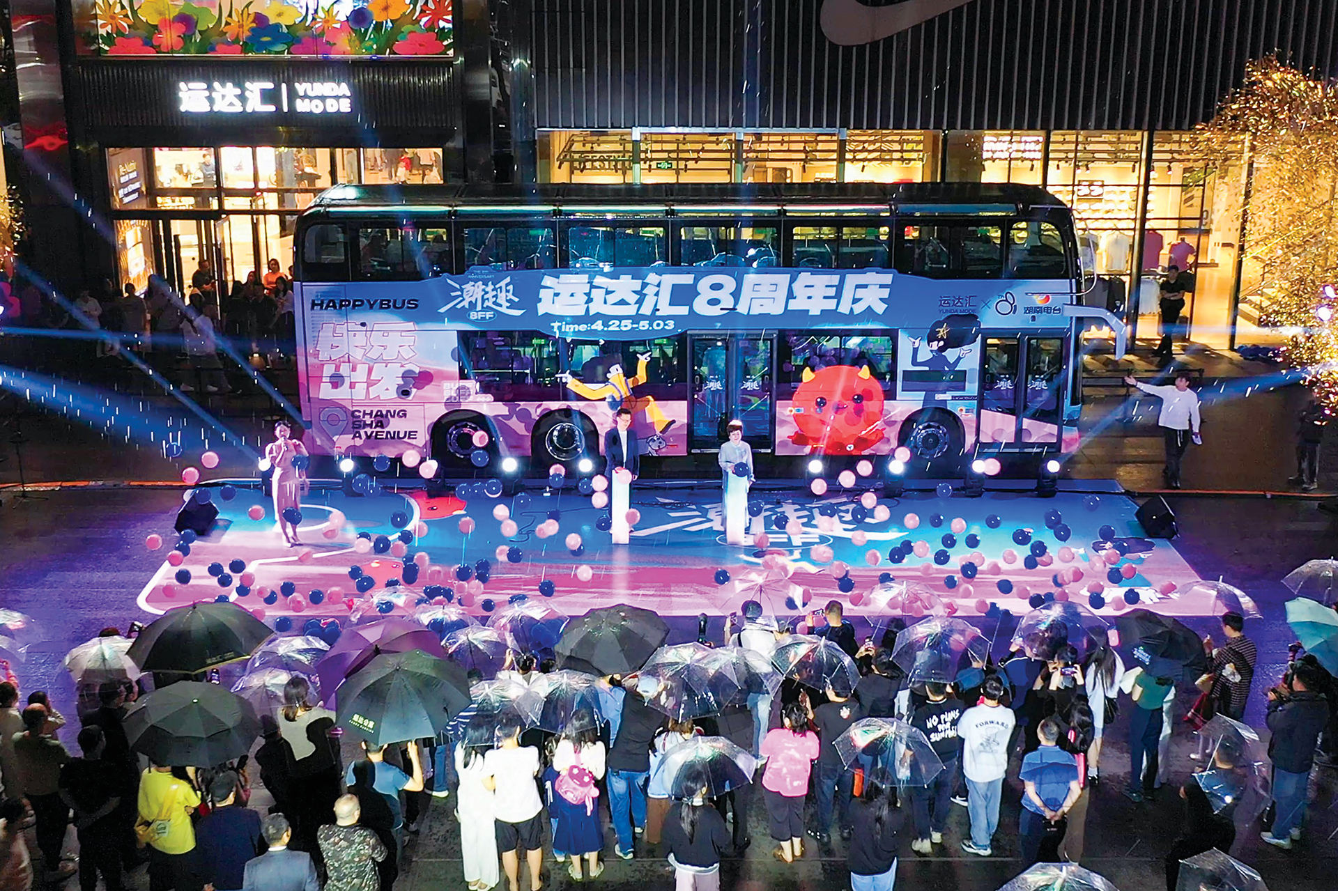 活動期間,精彩節(jié)目好戲連臺、熱鬧不斷。4月25日至26日,“南瓜造趣生活節(jié)”以音樂Live與潮流運動,點燃假日激情,解鎖別樣歡樂體驗。4月26日,一輛裝飾一新的運達匯雙層主題巴士化身“8周年慶生專車”,從運達中央廣場出發(fā)開啟8小時城市巡游。沿途驚喜不斷,脫口秀、熱舞快閃、電音派對、小丑互動等活動接連呈現(xiàn),讓歡樂在星城街頭傳遞。當(dāng)晚7點半,滿載歡樂的潮趣巴士抵達運達匯,南瓜音樂會的樂隊激情獻唱,搖擺舞嗨翻全場,更有千份生日蛋糕甜蜜派送,全場共慶高光時刻。此外,全天開啟的整點“搖一搖”PK賽吸引眾多市民參與,手速王者贏取驚喜好禮。