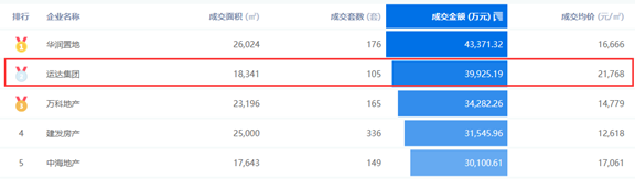 今年長沙30億梯隊房企中,運達集團整體成交均價在21768元/㎡、套均價在510萬元/套,價格遠超其他,成為長沙改善市場的扛旗者。