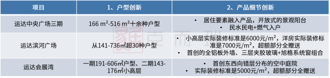 運達致力于為城市留下經(jīng)典項目,每一個運達作品,都能給市場新的驚喜。近幾年,運達一直在做產(chǎn)品創(chuàng)新,從運達中央廣場三期商業(yè)住宅、運達濱河廣場到運達會展灣,打造差異化產(chǎn)品,迎合新時代的居住需求。